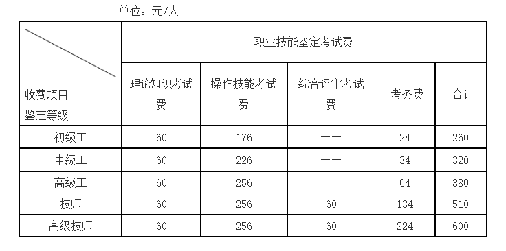 根據湖南省人力資源和社會保障廳文件《關于公布我省職業技能鑒定收費標準的通知》(湘人社規[2024] 3號)精神,
